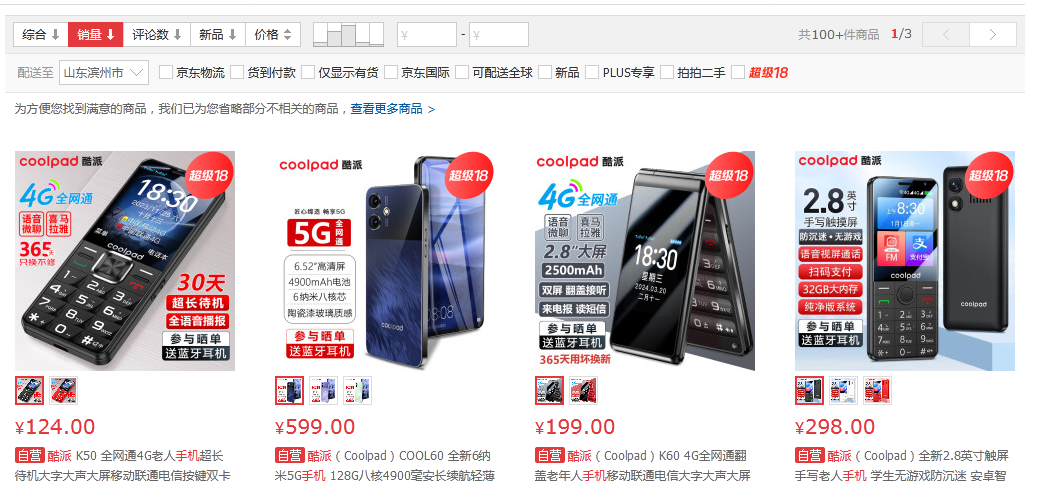 如今在电商平台搜索酷派手机,排名靠前的都是不足500元的老年手机,销售也十分惨淡。